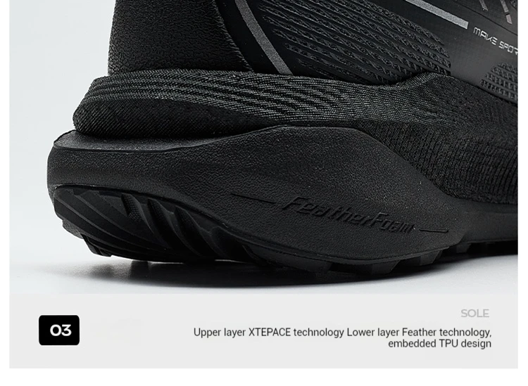Midsole material:Upper XTEP ACE technology + lower Qiyu technology